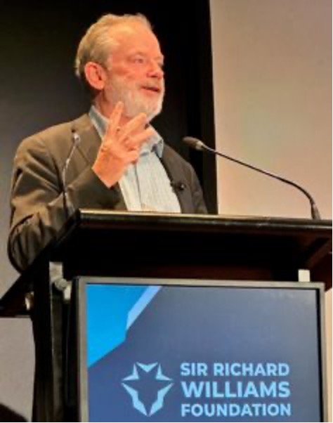 Dr. Hellyer speaking at the Sir Richard Williams Foundation seminar on May 22, 2025.